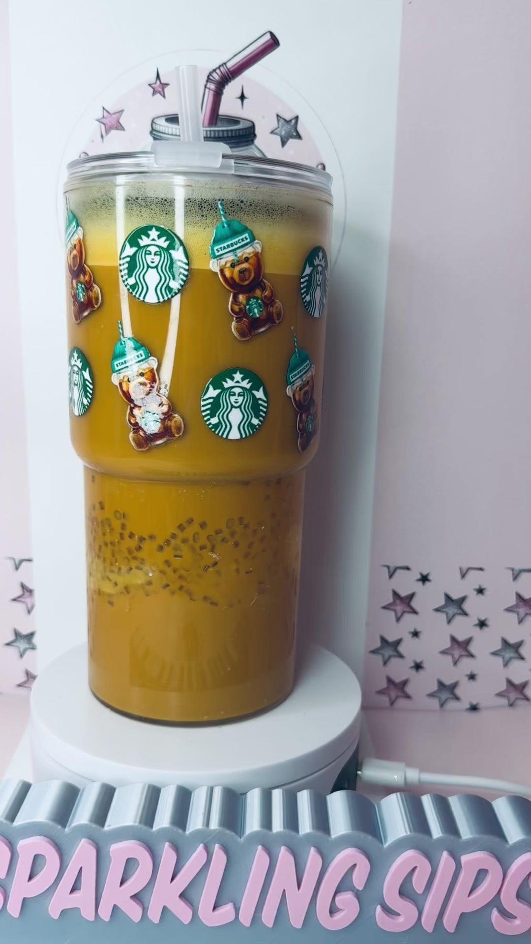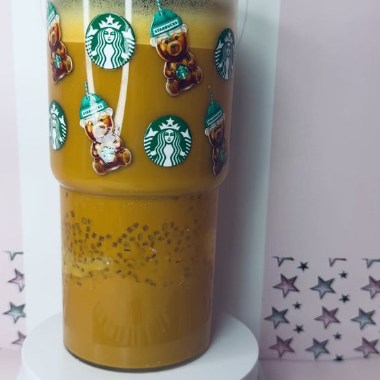 how amazing is our new Starbie bear iced coffee! With added caramel drizzle and ice pieces all inside the tumbler!