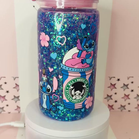 Stitch Starbie 16oz acrylic glitter snowglobe cup